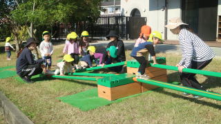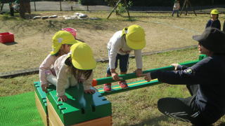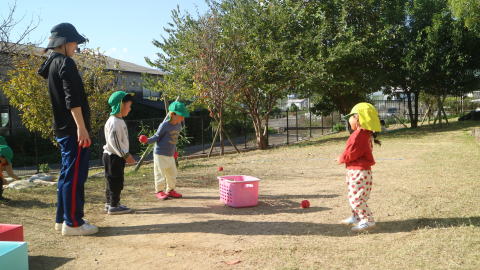 | 楽しみにしていた戸外遊び。 一日野の花団のときはいつもお日様が出てくれて、戸外で思いっきり遊ぶことができています。 |