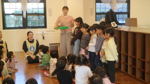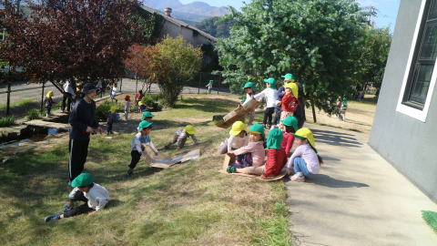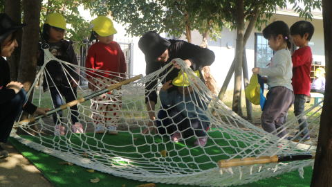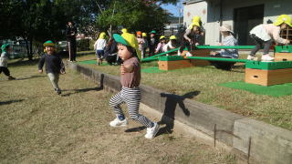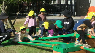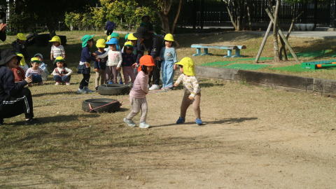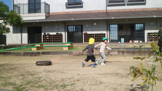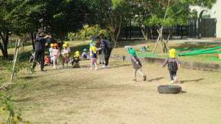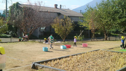 | 楽しみにしていた戸外遊び。 一日野の花団のときはいつもお日様が出てくれて、戸外で思いっきり遊ぶことができています。 |