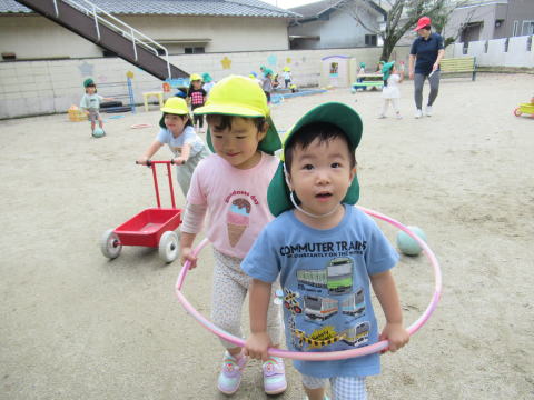 天気の良い日は園庭で遊んだりお散歩に出かけたりして楽しみました。