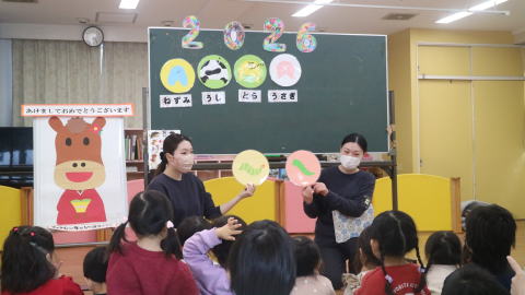![]() 十二支の絵本を読んでみるね。色々な動物が出てくるよ! |